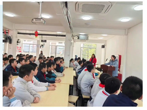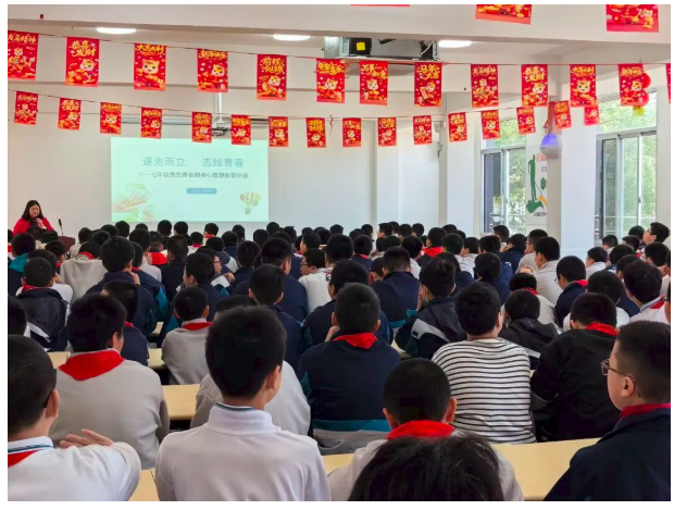 青春期是人生中充满变化与成长的关键阶段。为引导七年级男生科学应对青春期身心变化,养成积极健康的成长心态,1月16日中午,我校德育处举办了题为“逐光而立 志绘青春”的男生青春期专题讲座。本次讲座由心理健康教育教师熊玉平主讲,旨在帮助男生科学认知青春期变化,从容应对成长中的困惑。