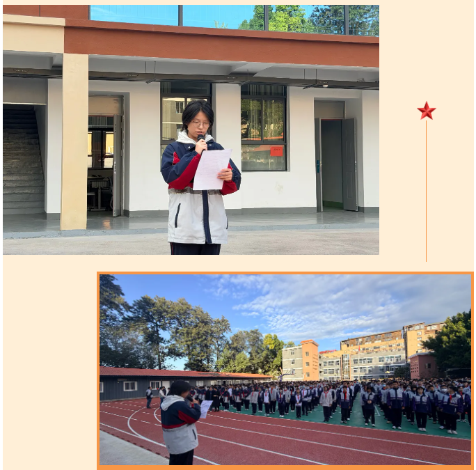 升旗仪式上,初三(8)班林诗弘同学以《法治伴成长,规则护未来》为题发表国旗下讲话。她结合《未成年人保护法》《预防未成年人犯罪法》等法律法规,生动阐释了法律对青少年成长的守护意义,指出规则并非束缚而是保障,呼吁同学们从知法、守法、用法三个维度践行法治精神。