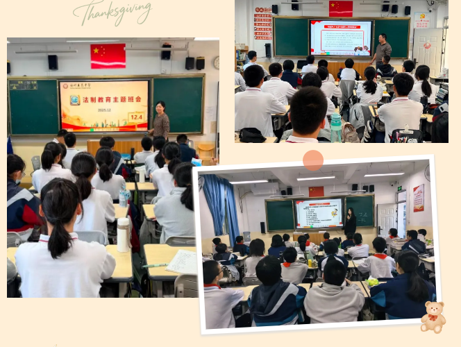 各班级精心组织“宪法伴我行”主题班会,围绕“什么是宪法”“未成年人相关法律”“不良行为分类”“未成年人犯罪预防”“合法权益保护”及“争做合格中学生”六个核心内容展开深入探讨。通过案例分析、知识问答等形式,同学们积极参与互动,清晰认知法律边界,深刻认识不良行为的危害,学会运用法律武器保护自身合法权益,进一步明确了作为新时代中学生的责任与担当。