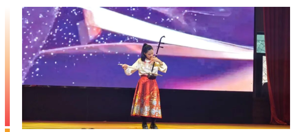 器乐表演尽显功底。器乐合奏如交响诗篇,中西乐器对话,和谐共鸣;独奏则聚光灯于一身,二胡、琵琶、小提琴、大提琴……指尖流淌的是专注的热爱与岁月的汗水。学生乐队的登场更将气氛推向高潮,电吉他、鼓点与主唱的热情交织,奏响专属青春的摇滚乐章。