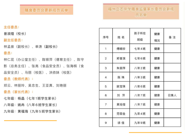 食品安全需要“阳光监督”,更需要家校同心。学校严格按照“公开透明、权责明确”原则,组建了由18名成员组成的膳食委员会,曾校长任主任委员,成员涵盖校领导、教师代表、家长代表等,实现监督视角全覆盖。