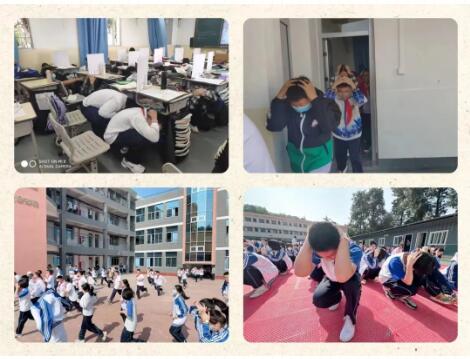 演练当天,当“地震”发生后,正在授课的教师立即停止教学活动,组织同学们到课桌下避险;20秒后,组织同学们从各楼层有序疏散,到操场按周一升旗仪式顺序列队集中。各班主任对疏散到操场的学生进行清点与安抚。