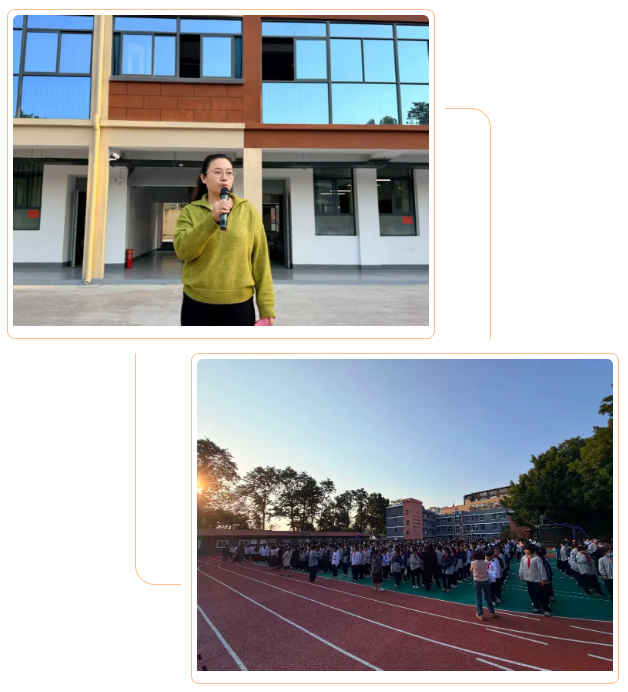 演练尾声,学校办公室主任林仁花对此次演练进行总结。她首先为全体师生反应迅速、配合默契、秩序井然的表现点赞,随后结合香港大埔宏福苑大火的惨痛案例,向师生们郑重警示:“生命从无彩排,每一次演练都是对生命的敬畏。规范的逃生技能就是危难时刻的‘救命稻草’,熟练的应急本领就是守护自己与他人的‘坚固铠甲’。”她呼吁全体师生将安全疏散要领牢记于心、付诸于行,让安全意识成为本能,让防护技能融入日常。