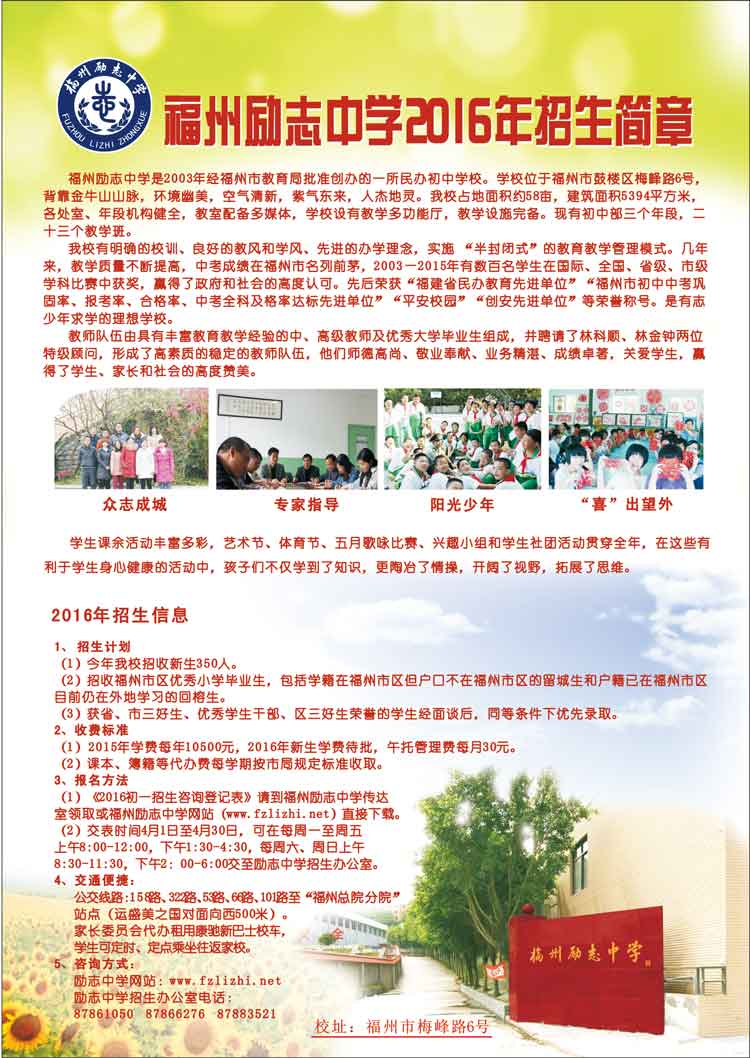 福州励志中学2016年招生简章