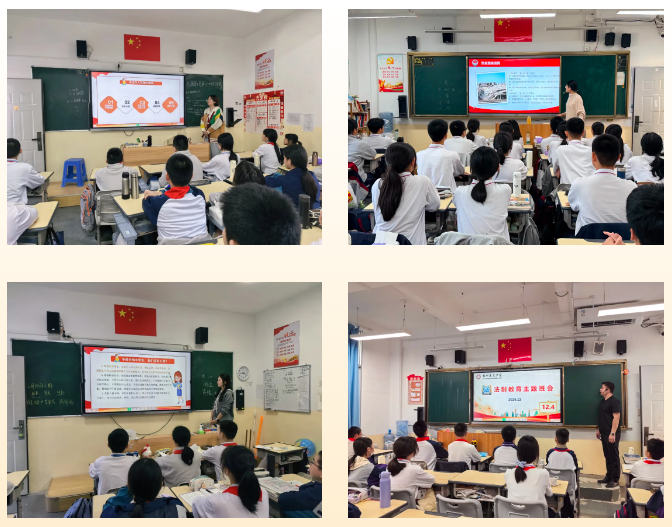 各班级精心组织“宪法伴我行”主题班会,围绕“什么是宪法”“未成年人相关法律”“不良行为分类”“未成年人犯罪预防”“合法权益保护”及“争做合格中学生”六个核心内容展开深入探讨。通过案例分析、知识问答等形式,同学们积极参与互动,清晰认知法律边界,深刻认识不良行为的危害,学会运用法律武器保护自身合法权益,进一步明确了作为新时代中学生的责任与担当。