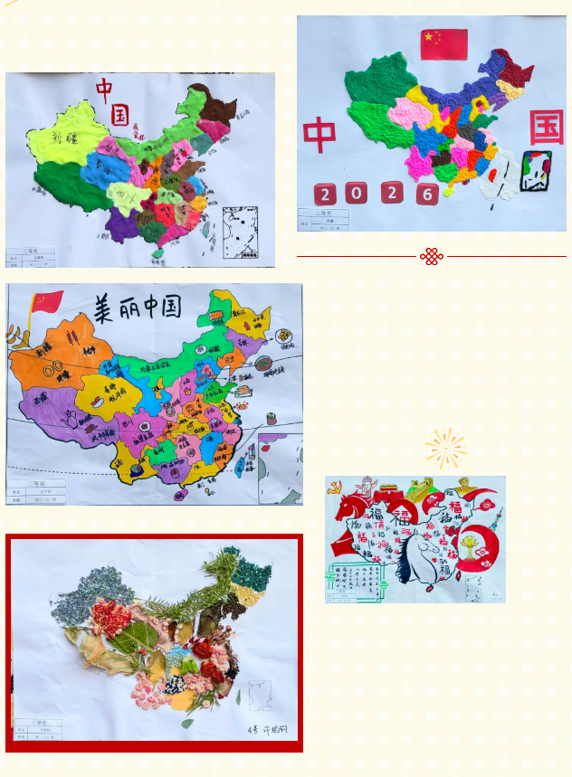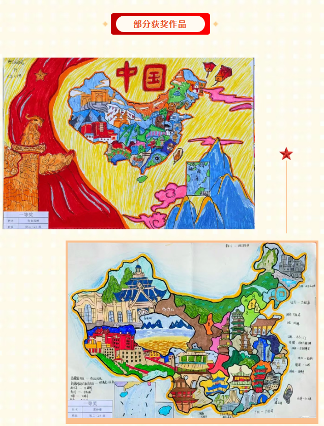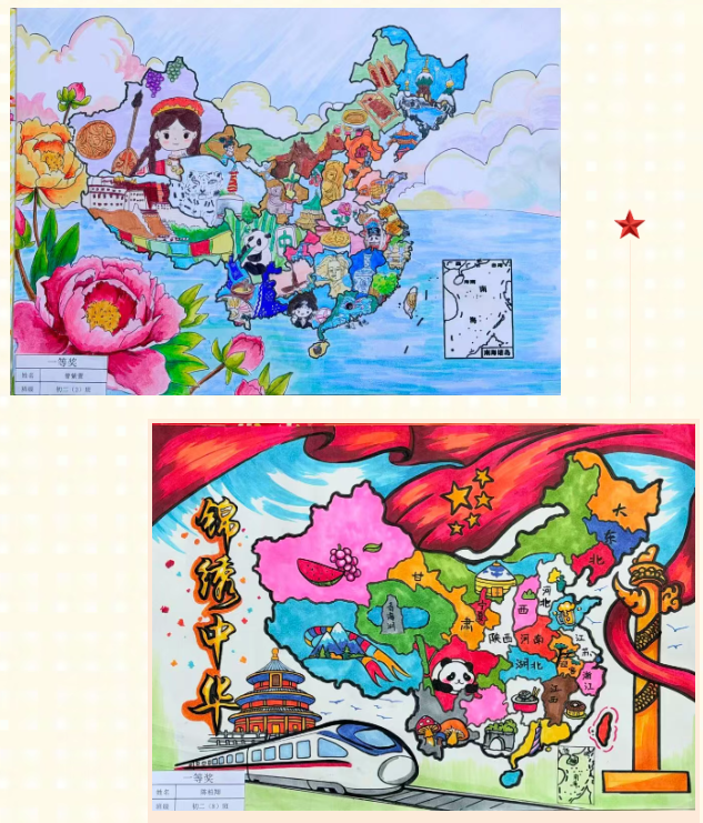 手中笔墨流转,笔下山河壮阔。近日,我校八年级地理“锦绣中华”创作比赛正式落下帷幕。这场以地图为载体的创意比拼,吸引了八年级学子广泛参与。同学们以线条为骨、色彩为韵,将对祖国壮丽河山的理解与热爱尽数熔铸于一幅幅匠心独具的作品之中。