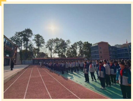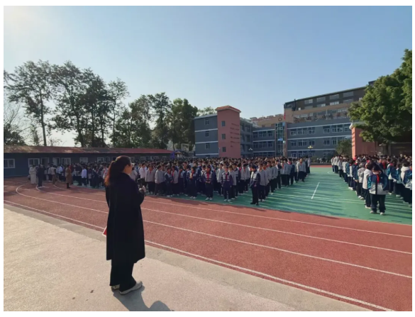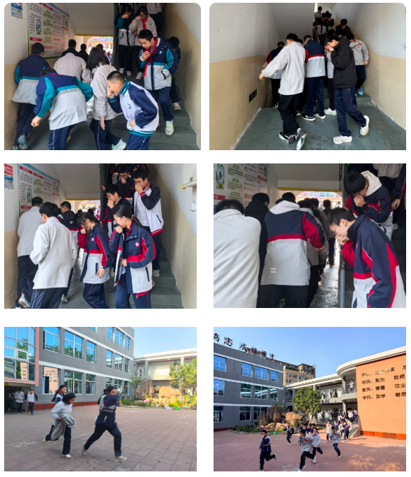 楼梯间内,同学们弯腰捂鼻、沉着前行;走廊之上,无人推搡拥挤、嬉戏停留。大家步调一致、行动迅速。短时间内,全体师生便安全抵达操场指定集合区域,圆满完成“快速、安全、有序”的疏散目标。