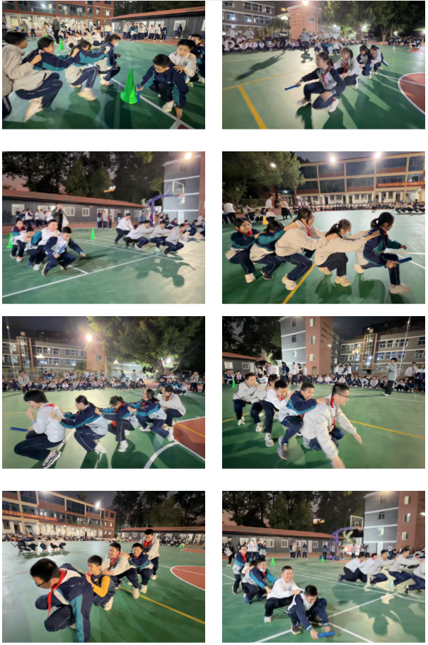 七年级的“男女同心”班级折返接力巨龙赛,考验的是团队的默契程度与协作能力。各班学子手拉手组成“巨龙”,步调一致向着终点进发,每一步迈进都凝聚着集体的力量,呐喊声、助威声此起彼伏。