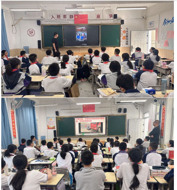 在主题班会上,学校德育处精心准备了丰富的课件和视频资料,通过生动的方式,与同学们深入探讨电动自行车和自行车交通安全知识。 课堂上,班主任详细讲解了电动自行车的正确使用方法,包括骑行前的车辆检查,如刹车是否灵敏、轮胎气压是否正常等;电动自行车电池不进梯、不入户;骑行过程中的注意事项,如保持安全车速、与其他车辆保持安全距离等。对于自行车骑行,班主任还强调了双手握把的重要性,以及转弯时提前打手势示意的规范动作。